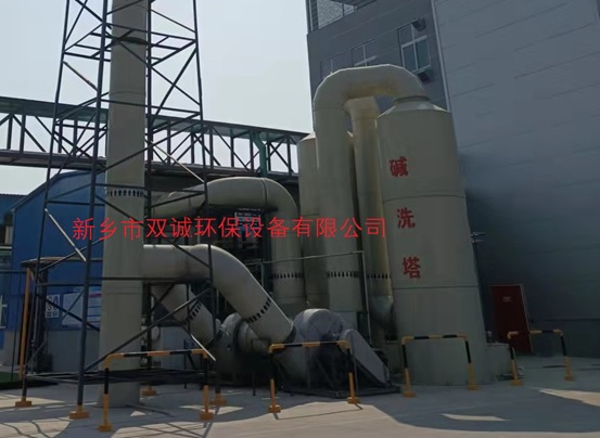 廢氣進入噴淋塔經(jīng)過填料層后,廢氣與氫氧化鈉吸收液發(fā)生氣液兩相全接觸吸收和中和反應(yīng),酸霧廢氣經(jīng)凈化后,經(jīng)除霧板脫水除霧后,達(dá)到排放標(biāo)準(zhǔn),由風(fēng)機排入大氣,吸收液由塔底水泵加壓后從塔頂向下噴淋,最后回流至塔底循環(huán)使用。